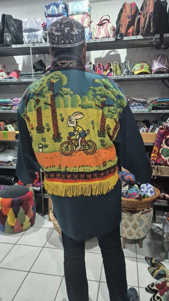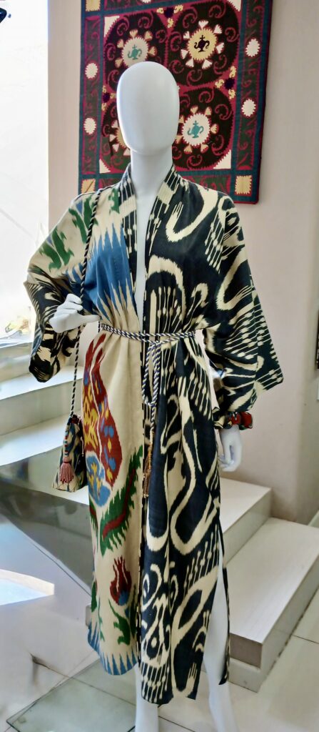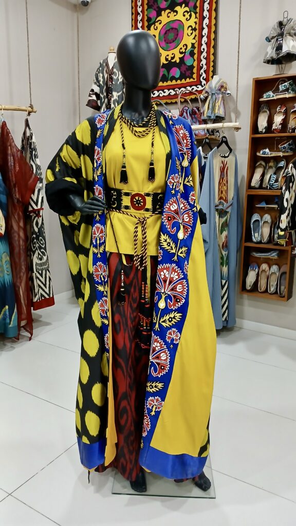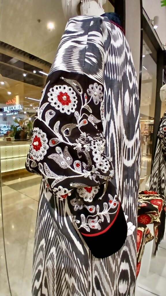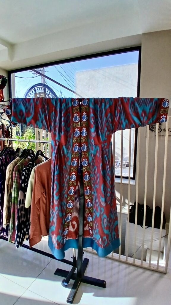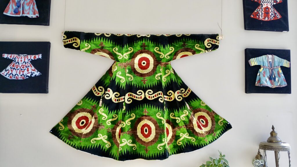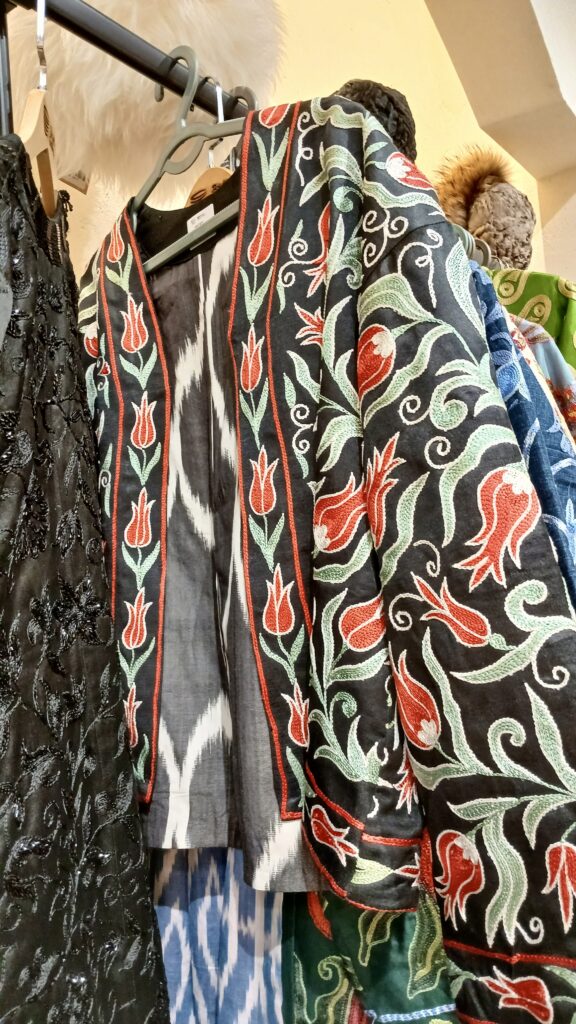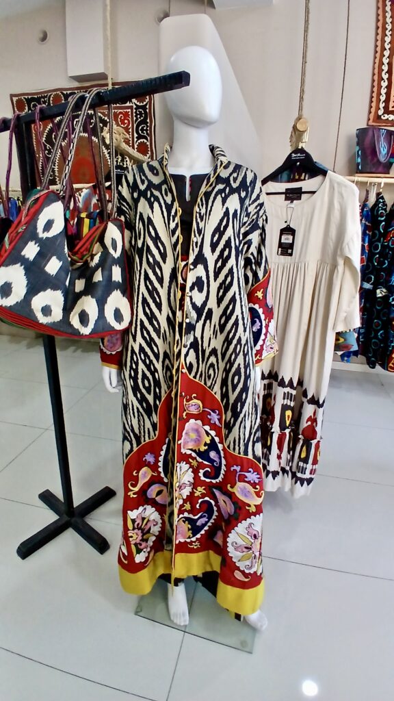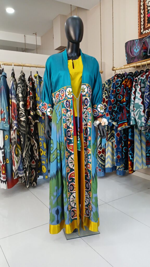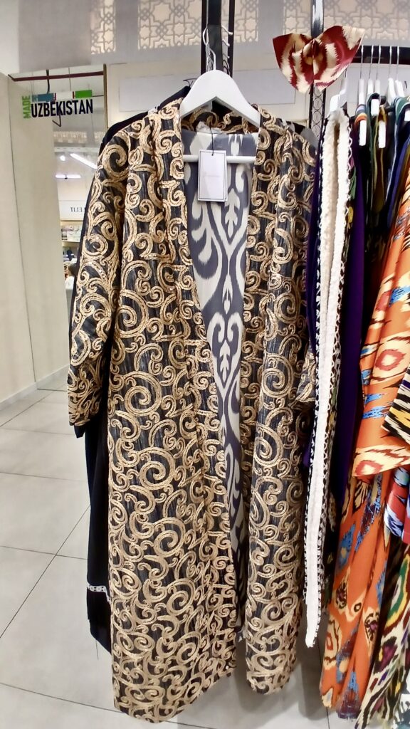 Если говорить о ценах, в средних магазинах и на рынках цена за яркий хлопчатобумажный халат в национальном стиле – от 7 евро (100 тысяч сумов), за шелковый – от 10-12 евро (140-160 тысяч сумов). Цены в бутиках за вещи ручной работы с богатой вышивкой вполне европейские 🙂