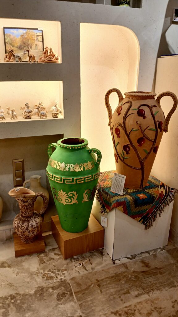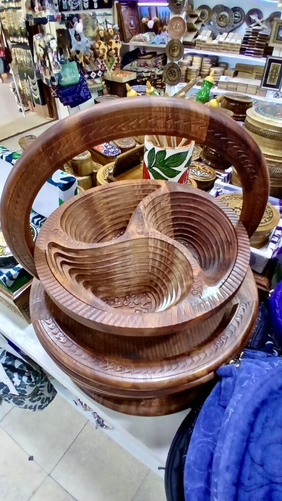 Помимо колеса обозрения и Узбекистана в миниатюре тут большой комплекс всевозможных магазинов ручной работы: посуды, ковров, украшений. И, конечно, одежды. Есть как бутики – с ценами от 400 евро. Так и вполне себе достойные и доступные по ценам. Например, женский длинный пиджак из плотного хлопка с узбекскими мотивами, на подкладке здесь обошелся в 25 евро.