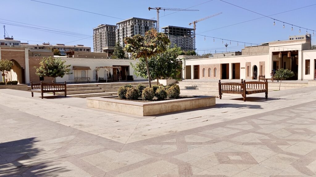 Торговый центр прямо в центре города, перед ним разбит новый парк. Представлены в основном европейские бренды плюс турецкие ADL, DeFacto, российские Ekonika, O’STIN и несколько узбекистанских дизайнерских магазинов. Последние стоят самого пристального внимания: помимо посуды здесь много женской одежды, она выполнена вручную, краски и вышивки просто фантастические. Чапаны – длинные и покороче халаты и в нашем понимании пиджаки и куртки 🙂 здесь стоят от 300 до 1800 евро (от 4 до 25 миллионов сумов).