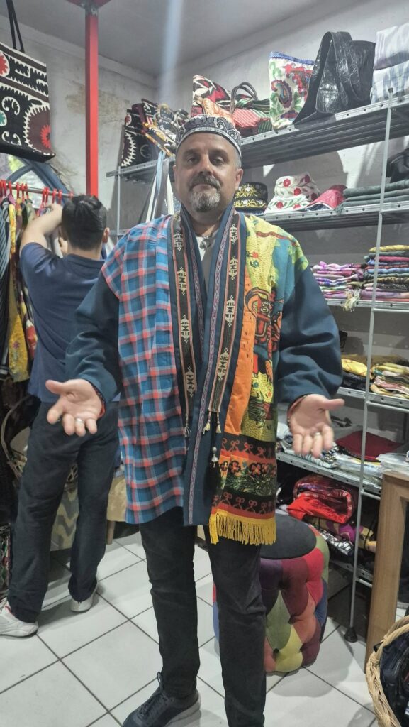 Еще один торговый центр недалеко от улицы Сеул, на которой проходит вечернее шоу фонтанов. Среди обычного ряда магазинов здесь есть, например, магазин белорусского белья «Милавица» с хорошим выбором и намного более приятным уровнем цен, чем у нас – самый сложный и дорогой бюстгальтер можно купить за 25 евро. И магазин традиционной узбекистанской одежды порадовал в том числе выбором интересной одежды для мужчин с широкими плечами 🙂 Борис купил здесь пару чапанов, укороченных таких халатов 🙂 – 100 евро за оба.