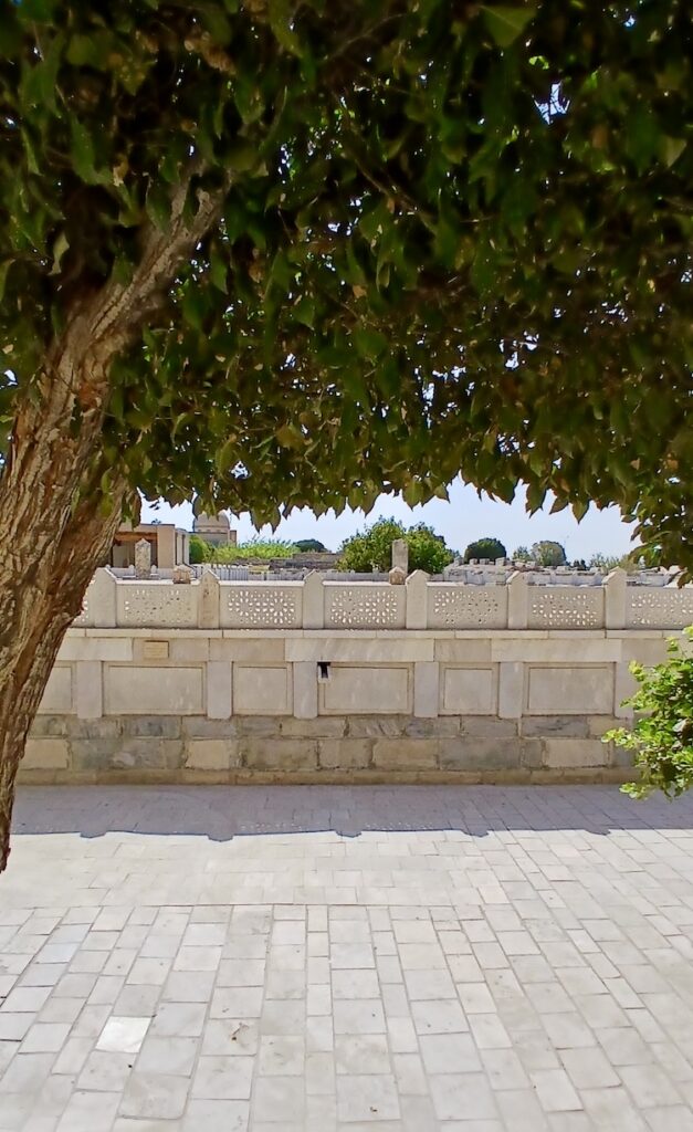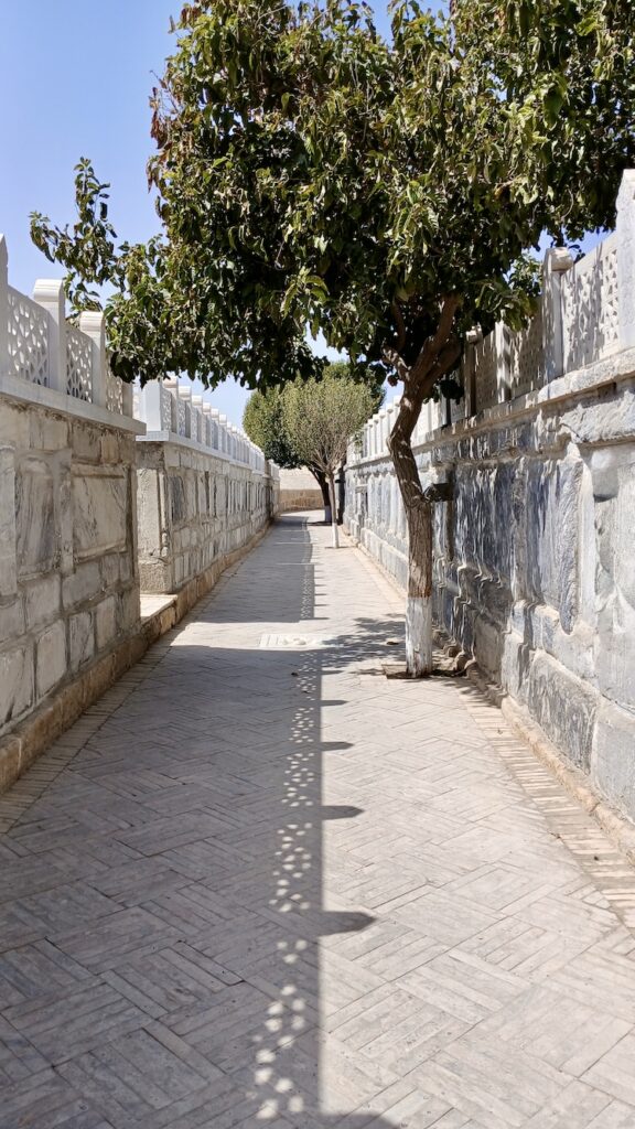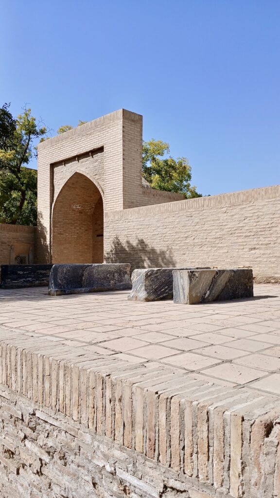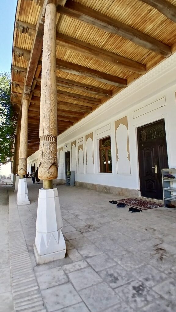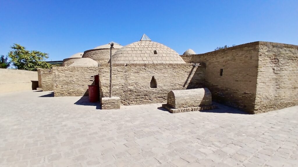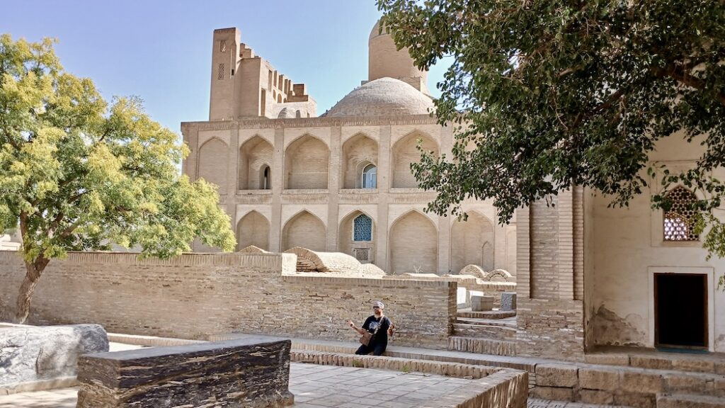 Это некрополь потомков Пророка в восьми километрах от Бухары. За вход с нас взяли чуть больше двух евро (30 000 сумов) за двоих. И прямо у входа мы встретили Джафара, который еще за пару евро рассказал об истории этого места и дал покормить местных голубей 🙂