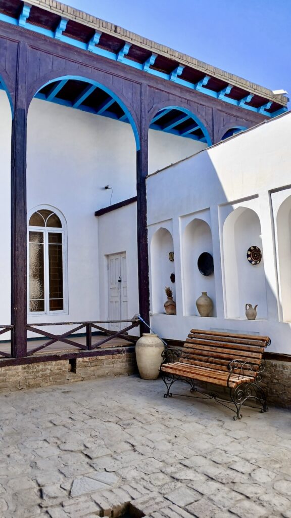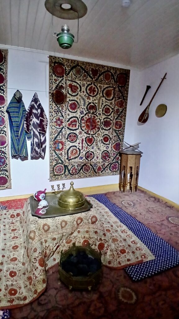 На территории дворца работает музей одежды: можно увидеть подлинные халаты эмира, которые были в нашем понимании еще и бронежилетами – спасали от кинжала. Последний бухарский эмир для своего времени был очень современным и настоящим реформатором, что не у всех находило понимание.
