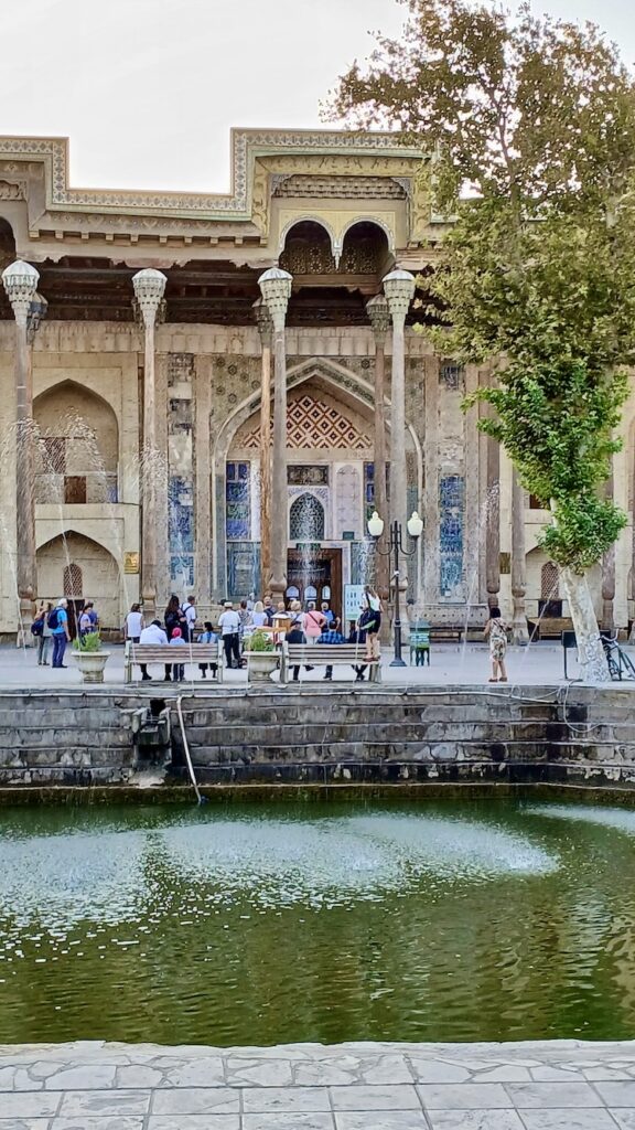 Одно из центральных туристический мест, из которого приятно начать путешествие по улочкам старой Бухары. Здесь рестораны исторически располагаются вокруг водоема – старого хауcа, пруда с каменными стенами, в старое время такие пруды были для прохлады в жару и, конечно, источниками воды.