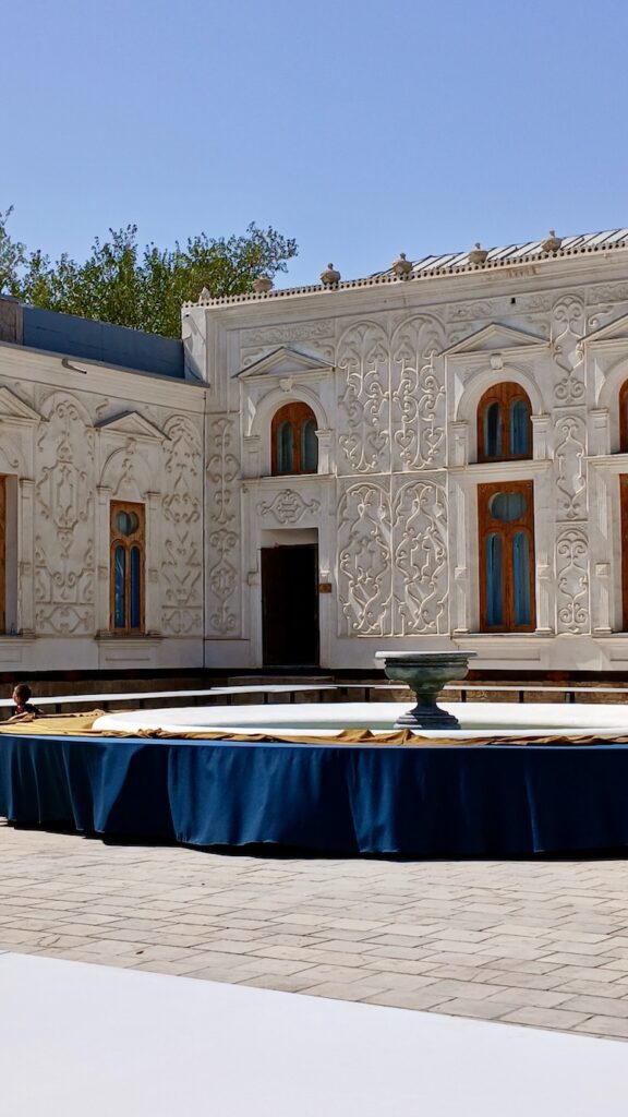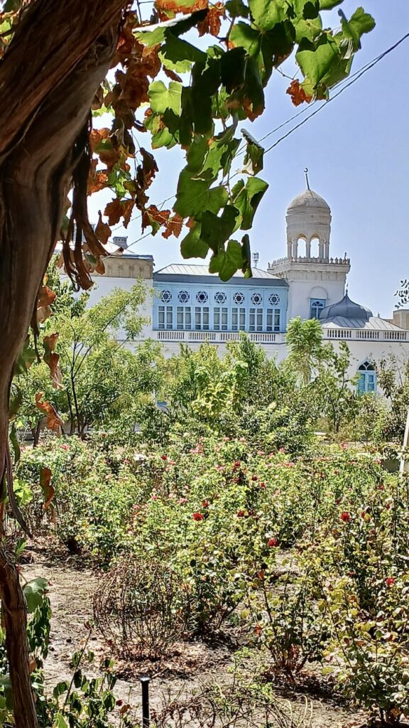 На второй день мы наметили поездку за город. Все началось с дворца 🙂 , который мы хотели посмотреть. Каганский дворец эмира, построенный в начале 20 века, по одной из версий к приезду Николая II, он находится рядом с аэропортом, сейчас на реставрации. Но есть еще Летний дворец бухарского эмира – Ситораи-Мохи-Хоса, в четырех километрах от Бухары.