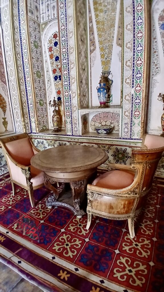 Дворец потрясающе красивый, интерьеры богатые и по-восточному затейливые и яркие. Ценно то, что здесь ничего не меняли, и интерьеры сохранились именно такими, какими были при эмире. Красная Армия разгромила цитадель, ну а летний дворец посчитали незначимым.