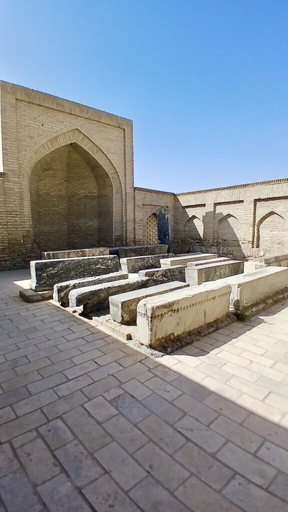 Так вот, в 10-м веке в Бухару приехали четыре мудреца проповедовать ислам. И вот они-то и их потомки и захоронены в этом городе мертвых. Так что это такой город усыпальниц, внутри есть также действующая мечеть.