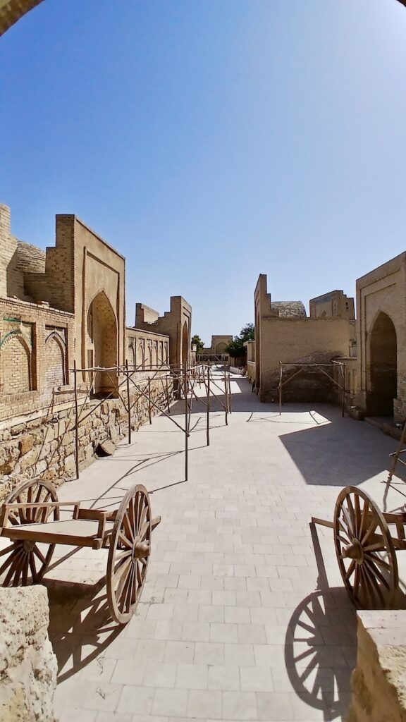 При том, что центр Бухары довольно компактный, достопримечательности относительно недалеко друг от друга, передвигаться от одной к другой в жару и по довольно узким улицам без окон достаточно утомительно 🙂 Выручают местные извозчики на гольф-карах. Просто доехать на такой машинке в один конец стоит 70 евроцентов (10 000 сумов). Мы взяли такого извозчика-гида по трем достопримечательностям – это стоило 22 евро (300 000 сумов) на двоих.