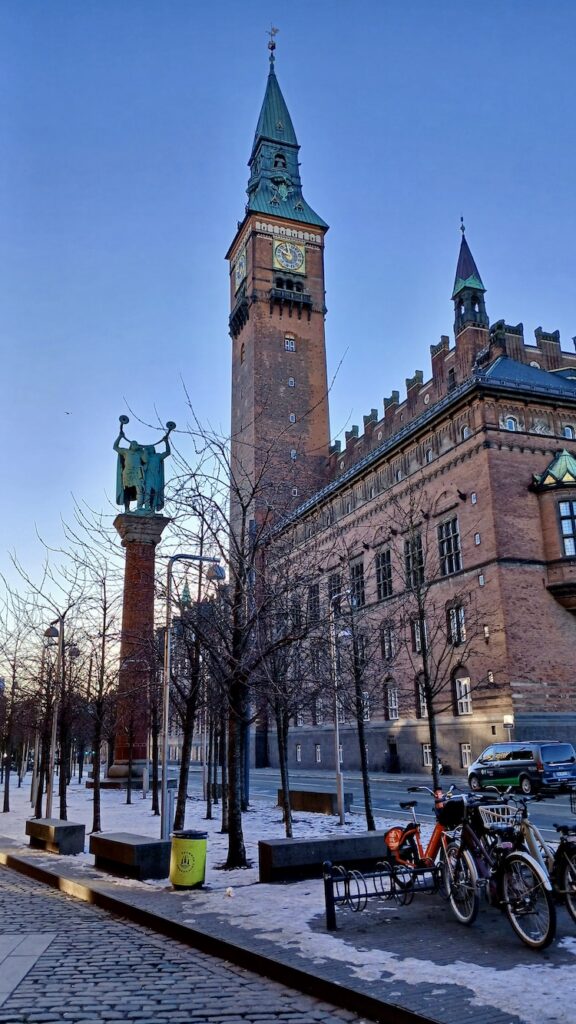 Знакомство с городом мы начали с ратуши. Ее можно осмотреть самостоятельно и совершенно бесплатно, а можно с экскурсией, и тогда билет стоит около 10 евро. Помимо интерьеров можно рассмотреть знаменитые астрономические часы Йенса Ольсена, которые бесперебойно идут с 1955 года, состоят из 15448 деталей и считаются чуть ли не самыми точными в мире. И еще, конечно, подняться на башню.
