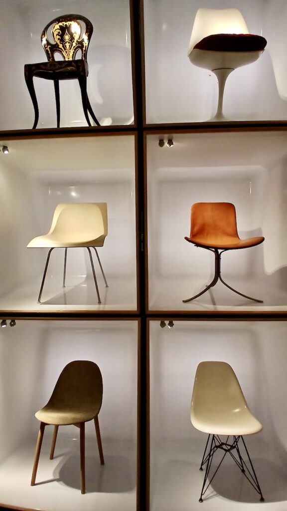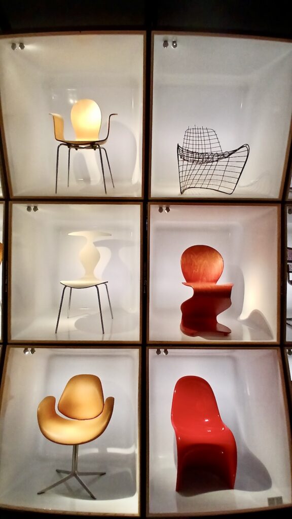 И Музей дизайна (Designmuseum Danmark). Тут есть очень любопытная экспозиция, посвященная дизайну моды, истории принтов и пряжек. А еще чудесная коллекция фарфора и светильников. И абсолютный восторг – история датских стульев: взрыв не только формы, но и цвета 🙂